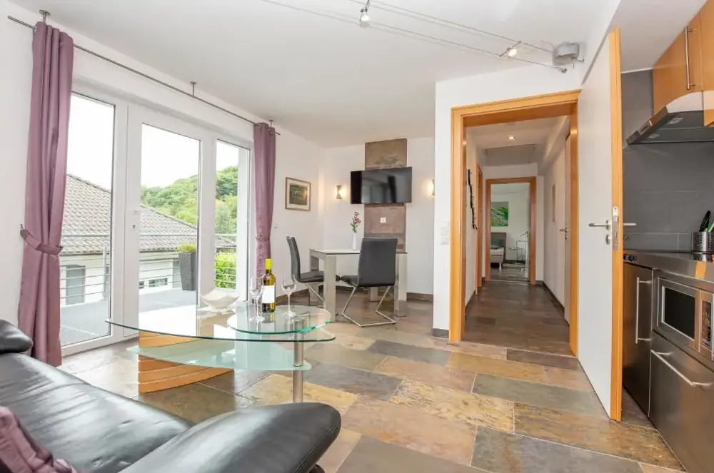 Die Ferienwohnung Sternenwald in Alf bietet eine gemütliche Unterkunft mit einer Küche sowie Essbereich und begehbarem Badezimmer. Die Wohnung verfügt über eine Kochnische, eine Kaffeemaschine und eine Mikrowelle. Gäste können die Sonne auf der Terrasse oder dem Balkon genießen, während sie den Gartenblick genießen. Im Außenbereich gibt es einen Sitzbereich und einen Garten zum Entspannen. Privater Check-in-Service, Fahrradabstellraum und kostenloser Parkplatz sind vorhanden. Der Ort liegt ruhig in der Nähe von Wander- und Radwegen. Zu den nah gelegenen Sehenswürdigkeiten zählen Cochem Castle, das etwa 16 Meilen entfernt ist, sowie der Nürburgring und der Frankfurthahn Airport. Die Bewertungen loben die Sauberkeit, die Ausstattung und die freundliche Gastfreundschaft des Vermieters.